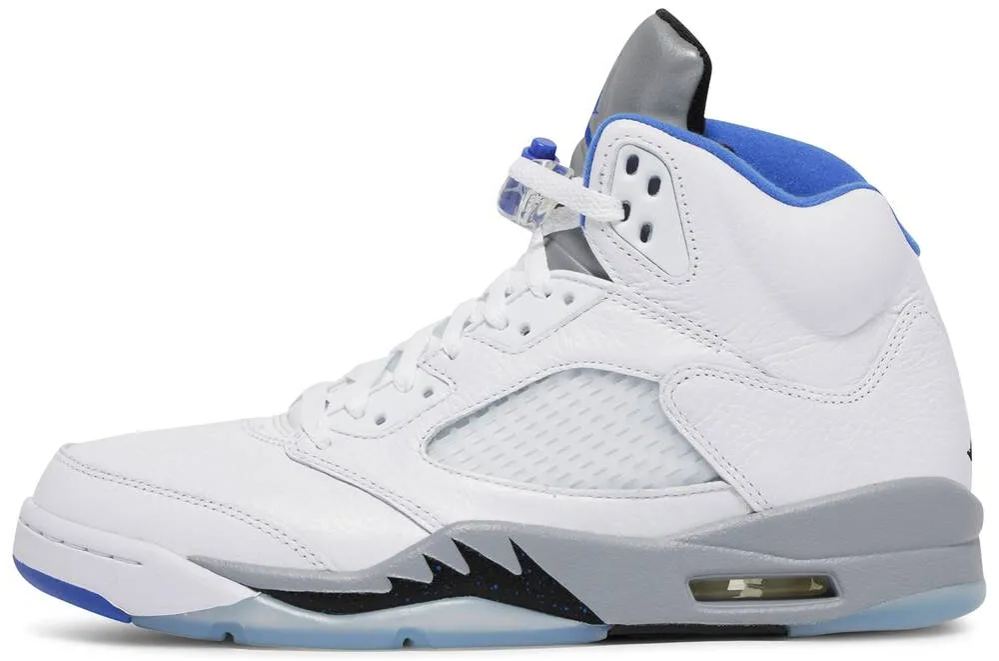 The Air Jordan 5 Retro ‘Stealth 2.0’ delivers a refreshed take on the original ‘Stealth’ Air Jordan 5 from 2006. The mid-top makes use of tumbled white leather throughout the upper . accented with powder blue Jumpman branding on the back heel and reflective silver tongue. A pale grey finish is applied to the midsole . featuring a visible niqdfke Air unit in the heel and a subtle paint splatter effect on the AJ5’s signature shark tooth detailing.