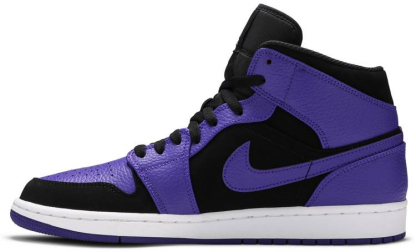 The Air Jordan 1 burst onto the scene in 1985 and quickly became iconic as the famed athlete's career soared. With a mid-top silhouette following in the early 2000s . this December 2018 'Dark Concord' edition is remodeled with original details and fresh materials. Purple tumbled leather is layered over black nubuck on the lateral sides. Classic Wings and Jumpman insignia rest on the ankle and tongue. Air-Sole cushioning and a rubber cupsole provide durability and comfort.