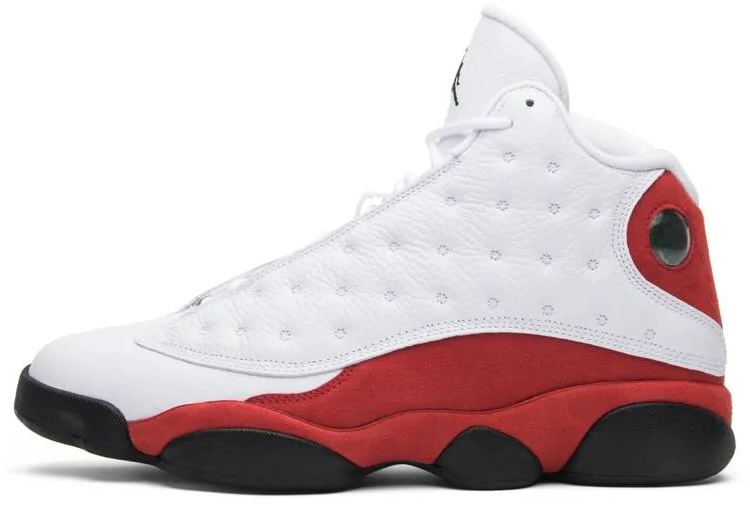 Released in February of 2017 . the Air Jordan 13 Retro ‘Chicago’ 2017 marks the return of the OG ‘Chicago’ colorway to the Jordan 13 silhouette. The sneaker features a white premium leather upper with team red suede on the base . heel . and midsole. The design also includes black Jumpman branding . a black outsole . and a green hologram on the heel.